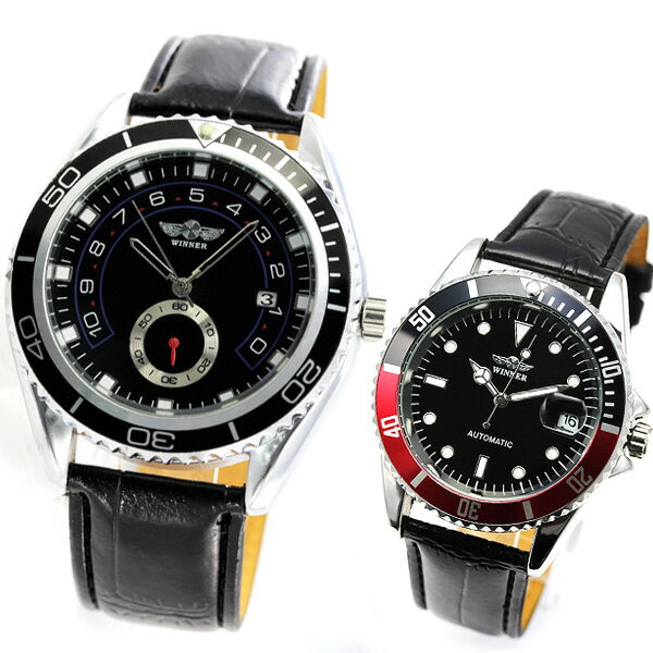 腕時計 時計 メンズ カレンダー 自動巻き ミリタリー BEL AIR ビッグフェイス 黒 赤 自動巻腕時計 BGG70 (ru-AC-W-BCG1m) 男性 バイカラー ギミックの効いた仕上がり!デザイン性も◎【メール便送料無料】